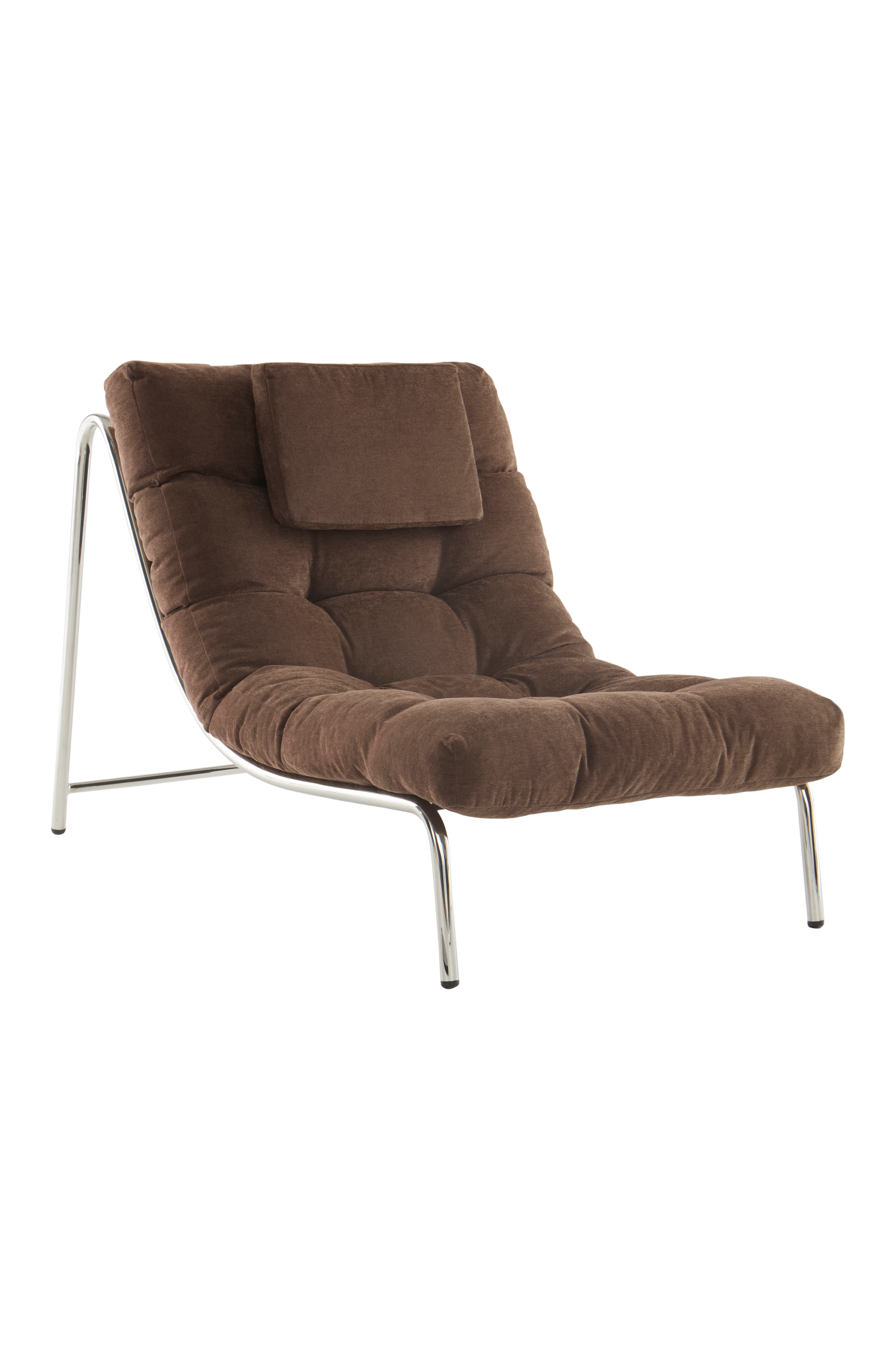 Hægindastóll með grind og fætur úr ryðfríu stáli. Áklæði polyester.