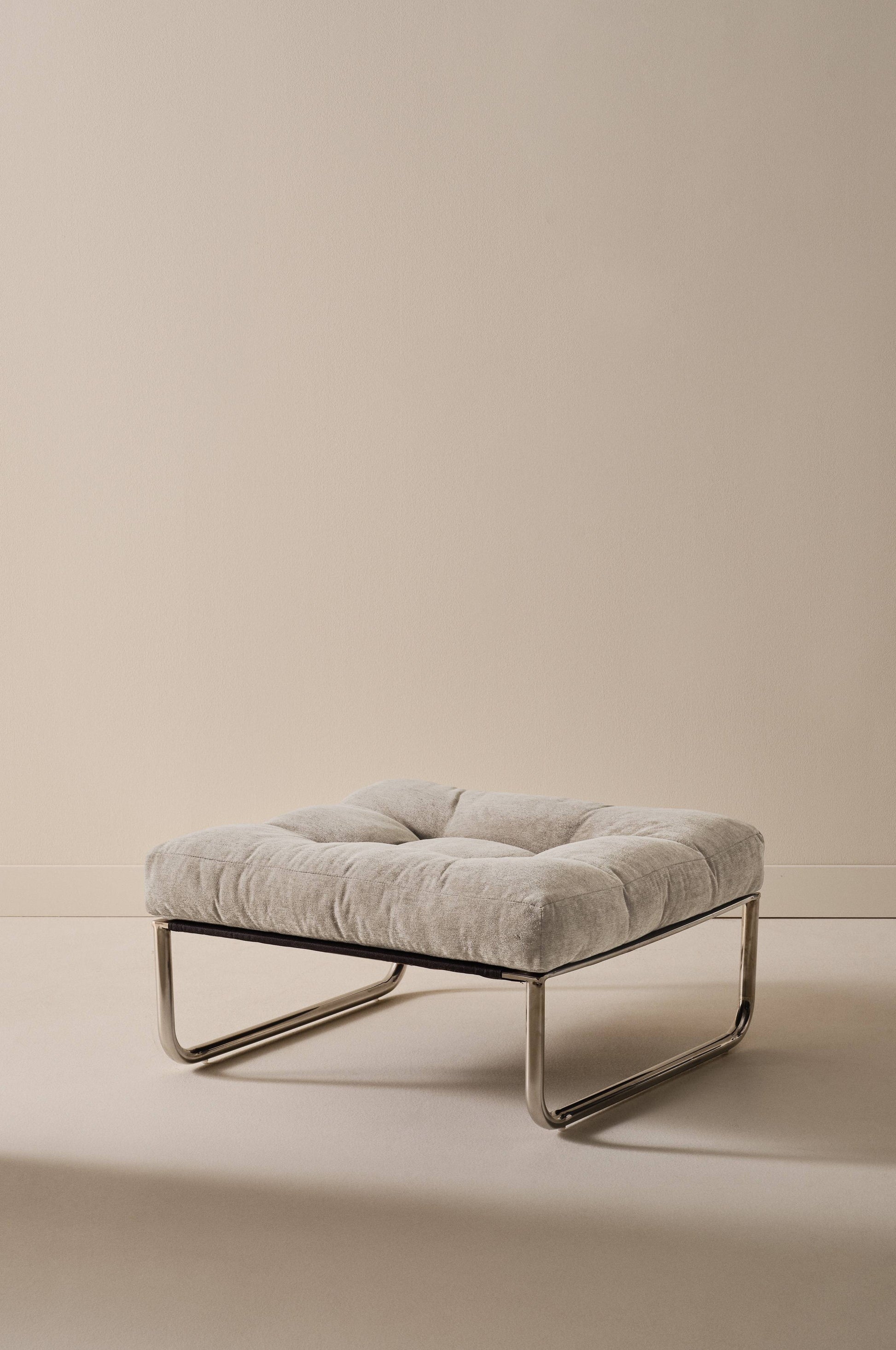 Fótskemill með grind og fótum úr ryðfríu stáli og áklæði úr polyester.